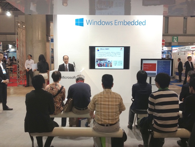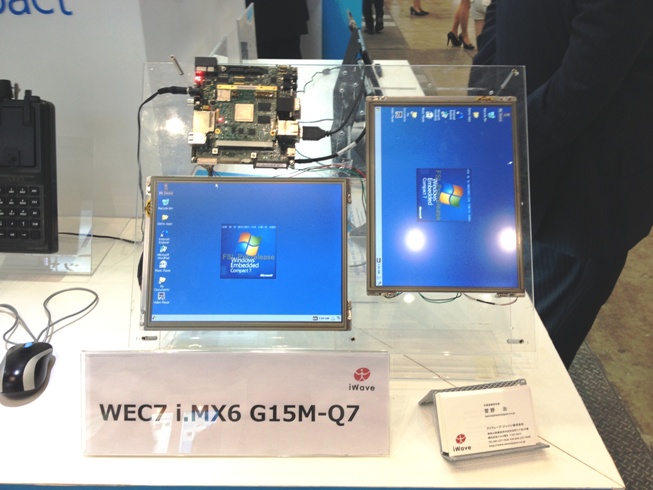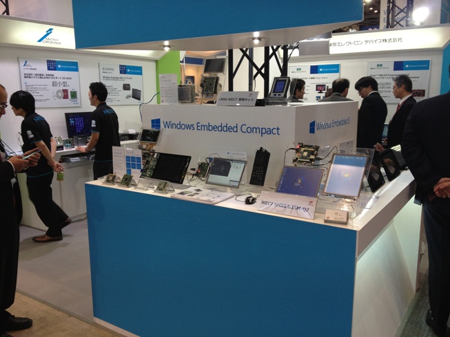 アイウェーブは2013年5月8日(水)~10日(金)の間、東京ビッグサイトで開催されたESEC 2013のマイクロソフトブース内(マイクロソフトコーナー)においてi.MX6 PicoITX SBC(Single Board computer)、i.MX6対応WEC7(Windows Embedded Compact 7)開発環境等の展示を行いました。 大勢のお客様にご来場いただき、ありがとうございました。 展示及びマイクロソフトブース内でのプレゼンテーションの様子をご覧ください。 「RainboW-Gシリーズ(WEC7搭載製品)成功事例及び今後の展開」(PDF)