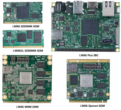 アイウェーブはi.MX6の各種SOM及びSBC(Single Board Computer)を提供しています。 アイウェーブは各種SOMの迅速な試作を可能にするために、各SOM毎の開発キットを用意しており、Linux、Android及びWEC7 BSPをサポートしています。 これらの開発キットは、新製品開発サイクルを最大60% 短縮し、迅速な市場投入を可能にします。 これらのすべてのi.MX6製品は、2016年の第1期からAndroid Lollipop及びLinux 3.14 kernel BSPのアップグレードが可能です。 i.MX6 Q7 SOM: 70mmx70mmのサイズで産業グレードの動作をサポートしています。 i.MX6 MXM SOM: 85mmx85mmの形状でオートモーティブグレードのi.MX6 CPU及び314 pin MXM2コネクタのピンアウトを備えたオートモーティブ仕様のインターフェイスをサポートしています。 i.MX6 SODIMM SOM: 67.6mmx37mm.と非常にコンパクトな形状で、コマーシャル、産業グレード両方の動作温度をサポートしています。 i.MX6 Pico ITX SBC: 100mmx70mmのサイズで全てのi.MX6用のオンボードコネクタをサポートしており、拡張コネクタにより更なるIOの拡張オプションが可能です。 これらの異なる形状のSOM及びSBCはQuad、Dual、Dual Lite、Soloの異なるi.MX6 CPUを選択できます。 この他にもi.MX6 Quad Plus やi.MX6 Dual plusのCPUコンフィギュレーションがあります。 プレスリリーストップへ