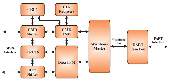 iW-SDIO スレーブ コントローラはSDIOとUARTのブリッジのコアとして機能し、SDIOの設計を容易にして開発に要する時間を短縮します。このIPコアにはSDバスプロトコルを処理する機能が入っています。
